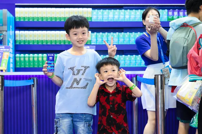 Các em nhỏ được uống sữa thỏa thích, tham gia sân chơi miễn phí và các hoạt động đổi vỏ hộp sữa lấy quà, check-in góp cây cho rừng nhân ngày 1/6
