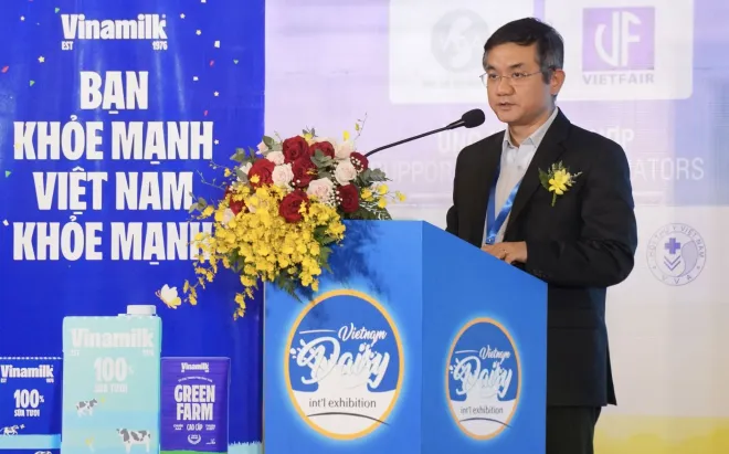 Ông Nguyễn Quang Trí - Giám đốc điều hành Marketing Vinamilk - phát biểu tại sự kiện khai mạc Triển lãm quốc tế ngành sữa và sản phẩm sữa 2024