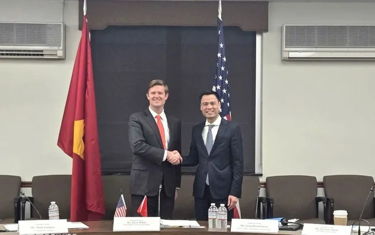 Thứ trưởng Bộ Ngoại giao Đặng Hoàng Giang và Quyền Trợ lý Ngoại trưởng Mỹ Fleet White. (Ảnh: TTXVN phát)