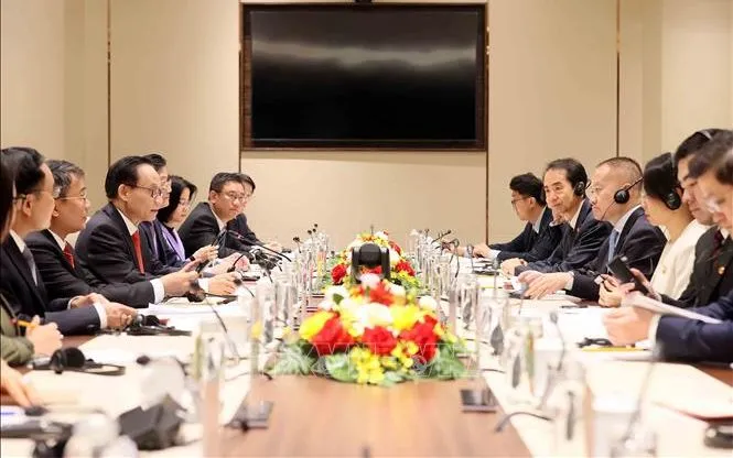 Bộ trưởng Bộ Ngoại giao Lê Hoài Trung hội đàm với đặc phái viên của Tổng Bí thư, Chủ tịch nước Trung Quốc Tập Cận Bình, đồng chí Lưu Hải Tinh. Ảnh: An Đăng/TTXVN