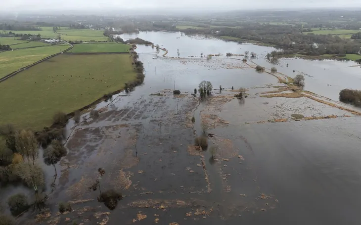Nước lũ bao phủ các cánh đồng gần Harbridge ở Hampshire, Anh (Ảnh: PA)