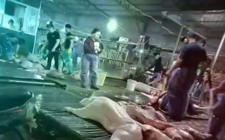 Nửa đêm về sáng, những chiếc xe chở lợn nhiễm dịch tả châu Phi được đối tượng thu gom từ nhiều hộ dân tại các tỉnh Phú Thọ, Tuyên Quang đưa về Hà Nội. Điểm đến là lò mổ Vạn Phúc, xã Nam Phù, Hà Nội. Đây là một trong những lò mổ có quy mô lớn nhất khu vực này. Trung bình một ngày giết mổ 2.000 - 3.000 con lợn.