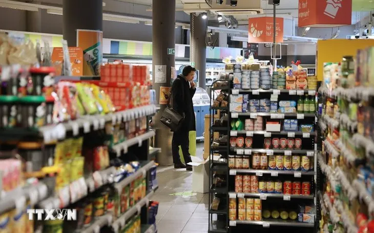 Người dân mua sắm tại siêu thị ở Brussels, Bỉ. (Ảnh: THX/TTXVN)