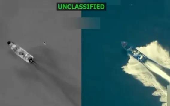 Hình ảnh một vụ tấn công tàu bị cáo buộc chở ma túy trên biển của Mỹ (Ảnh: Donald J. Trump/Truth Social)