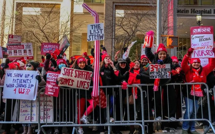 Gần 15.000 y tá đình công, ngừng làm việc tại Mount Sinai, Mount Sinai Morningside và West, Montefiore và NewYork-Presbyterian - theo Hiệp hội Y tá bang New York (NYSNA), công đoàn đại diện cho các y tá.