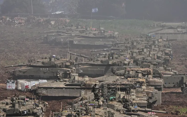 Xe tăng Israel tập kết ở phía Bắc Israel gần biên giới với Lebanon, ngày 8/3/2026. (Ảnh: AP)