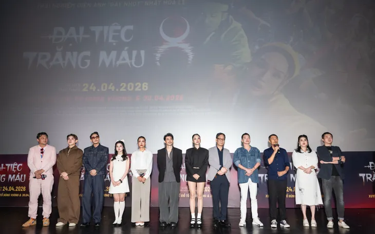 Đạo diễn Phan Gia Nhật Linh, nhà sản xuất Charlie Nguyễn cùng các diễn viên tham gia phim Đại tiệc trăng máu 8