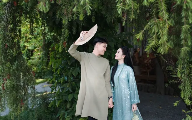 Đôi bạn trẻ chọn trang phục áo dài để có những bức hình ăn ý, nổi bật với khung cảnh (Ảnh: Thanh Sơn)