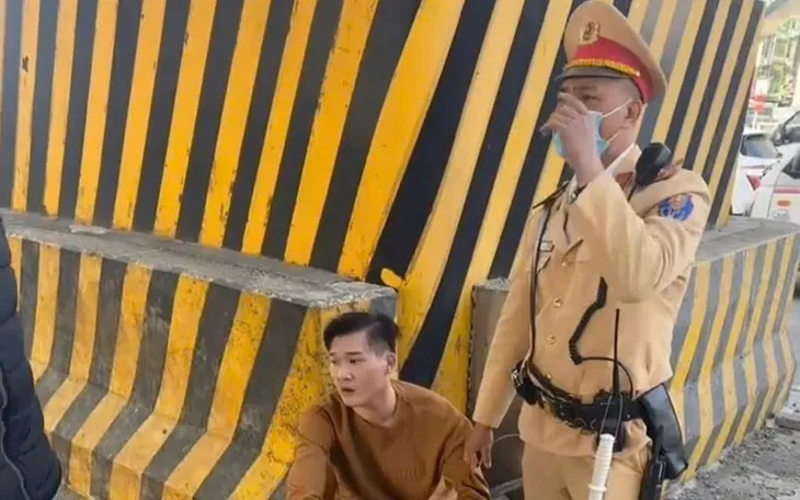 Đối tượng nghi vấn bị CSGT khống chế (ảnh người dân đăng tải trên MXH)