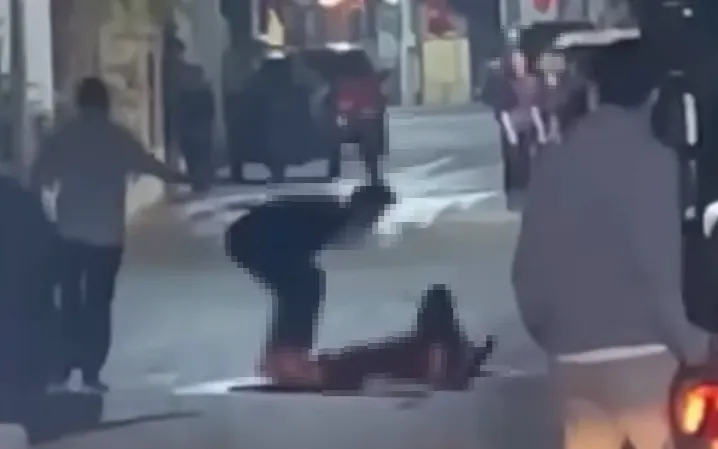 Dù được can ngăn, đối tượng vẫn tiếp tục dùng dao tấn công nạn nhân. (ảnh: Cắt từ clip)