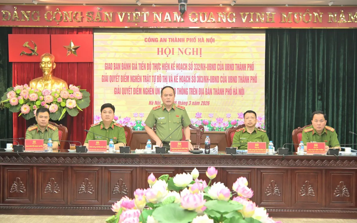 Sáng 6/3/2026, Công an TP Hà Nội tổ chức hội nghị trực tuyến đánh giá kết quả thực hiện Kế hoạch số 332 và Kế hoạch số 383 của UBND TP về giải quyết các điểm nghẽn trật tự đô thị và ùn tắc giao thông. Hội nghị kết nối đến các điểm cầu cơ sở với hơn 470 đại biểu là lãnh đạo UBND, Ban Chỉ huy Công an và Cảnh sát trật tự cấp xã, phường tham dự.