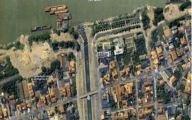 Vị trí dựng các chốt bằng bê-tông chặn lối vào các bến bãi không phép trên địa bàn xã Vĩnh Thanh. Ảnh: UBND xã Vĩnh Thanh.