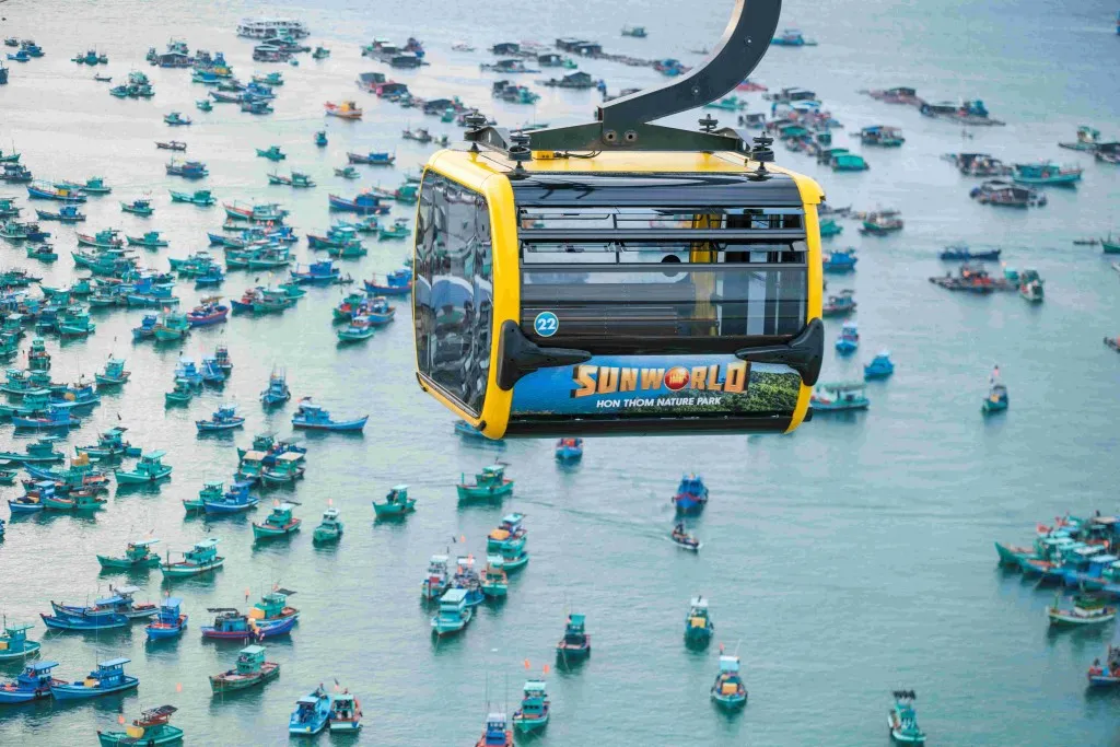 Đứng đầu danh sách là tuyến cáp treo Hòn Thơm, công trình nổi bật tại phía Nam đảo Phú Quốc. Với chiều dài gần 8 km, đây từng được ghi nhận là tuyến cáp treo ba dây vượt biển dài nhất thế giới, mang đến trải nghiệm độc đáo cho du khách.