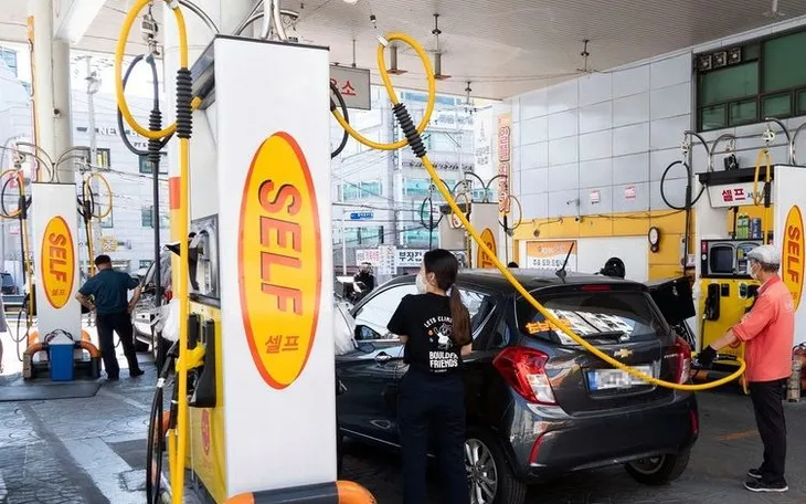 Người dân mua xăng tại một trạm xăng ở Seoul, Hàn Quốc. (Ảnh: THX/TTXVN)