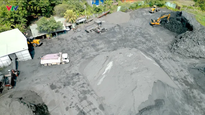 Gần đó, một bãi than với khối lượng ước tính khoảng 1.000 tấn được tập kết lộ thiên, chưa có biện pháp che chắn. Trong điều kiện nắng, gió, bụi than có thể phát tán ra môi trường xung quanh.