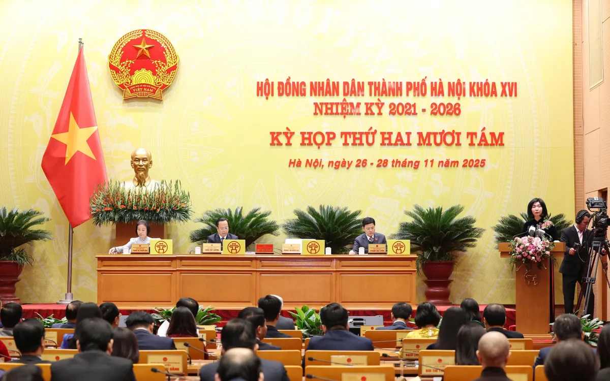 Phát biểu khai mạc kỳ họp, Chủ tịch HĐND thành phố Hà Nội Phùng Thị Hồng Hà nhấn mạnh, Kỳ họp thứ 28 của HĐND Thành phố là kỳ họp thường lệ cuối năm 2025 để xem xét tình hình phát triển kinh tế - xã hội, an ninh quốc phòng, thu, chi ngân sách, đầu tư công năm 2025, nhiệm vụ, giải pháp năm 2026; xem xét, ban hành một số quy định, cơ chế, chính sách để kịp thời cụ thể hóa Luật Thủ đô năm 2024 và quyết nghị nhiều nội dung quan trọng khác.