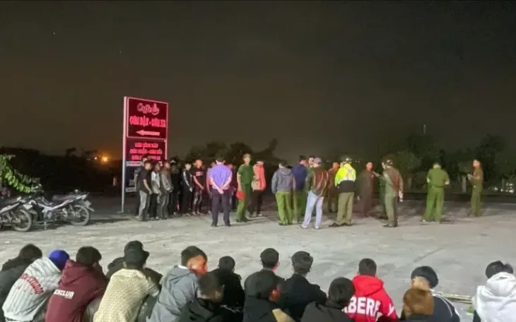 Công an xử lý nhóm thanh thiếu niên liên quan vụ án. Ảnh: PLO