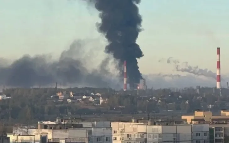 Cột khói dày đặc bốc lên từ nhà máy lọc dầu Novo-Yaroslavsky ở tỉnh Yaroslavl, Liên bang Nga, ngày 1/10/2025 (Ảnh: Mạng xã hội)