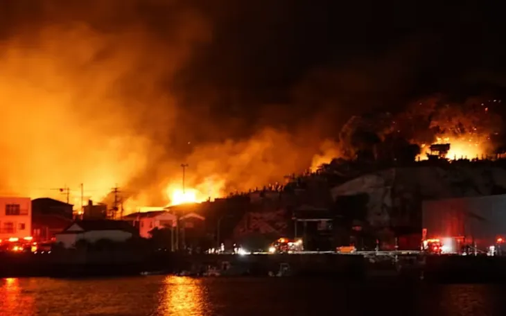 Hình ảnh tại hiện trường cho thấy lực lượng cứu hỏa phải làm việc xuyên đêm, sử dụng nhiều vòi rồng để khống chế các cột lửa dữ dội đang bốc cao và nhuộm đỏ cả bầu trời. Người dân địa phương được sơ tán đến một trung tâm tạm trú khẩn cấp.