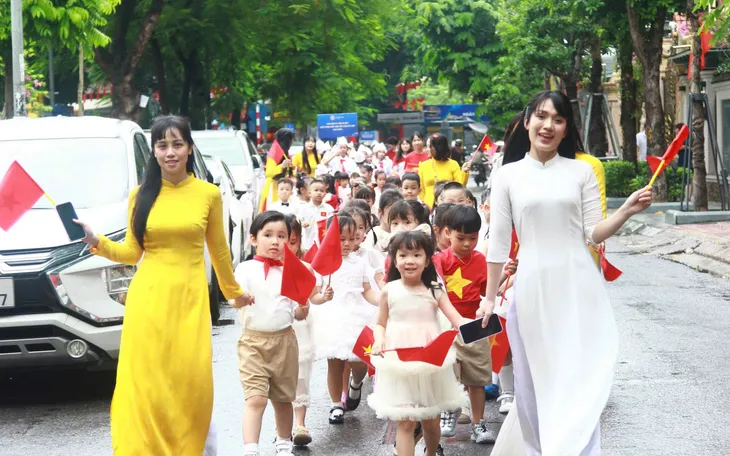 Hàng trăm học sinh và thầy cô tại Hà Nội vừa tổ chức cùng diễu hành để giúp học sinh cảm nhận rõ nét không khí của mùa thu lịch sử, để nhân lên những tình cảm đẹp về quê hương.