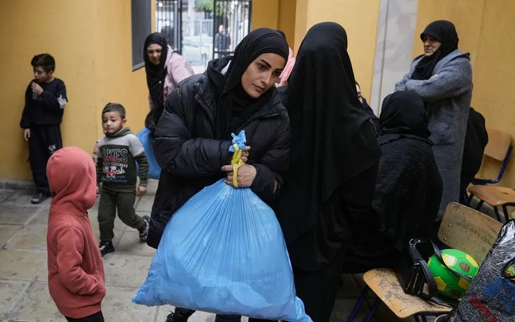 Người dân phải sơ tán do các cuộc không kích của Israel ở miền Nam Lebanon và Dahiyeh, vùng ngoại ô phía Nam Beirut, ngày 7/3/2026 (Ảnh: AP)