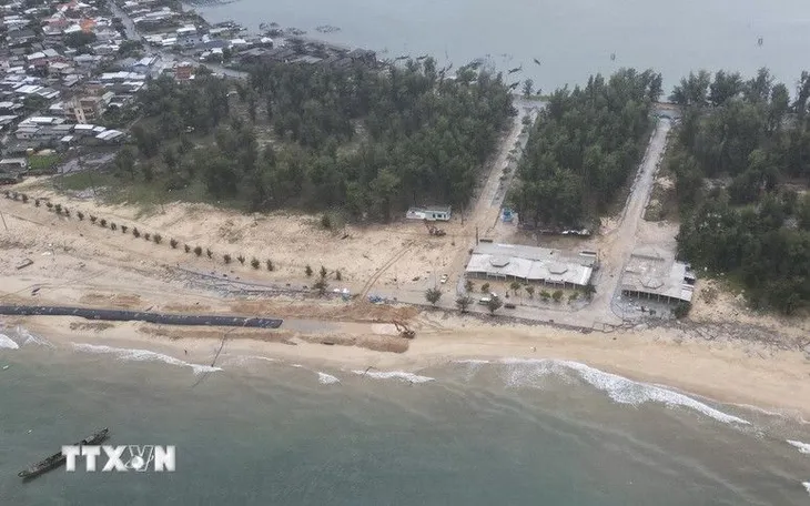 Công trình kè mềm được Huế triển khai xây dựng gần với điểm sạt lở ở biển Thuận An. (Ảnh: Văn Dũng/TTXVN)