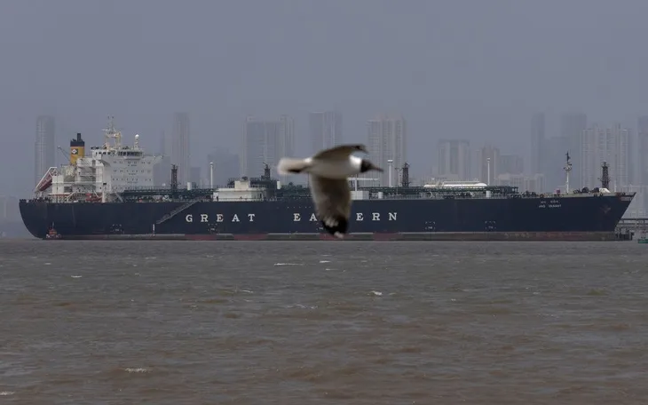 Tàu chở khí hóa lỏng (LPG) mang cờ Ấn Độ sau khi vượt qua eo biển Hormuz, ngày 1/4/2026. (Ảnh: AP)