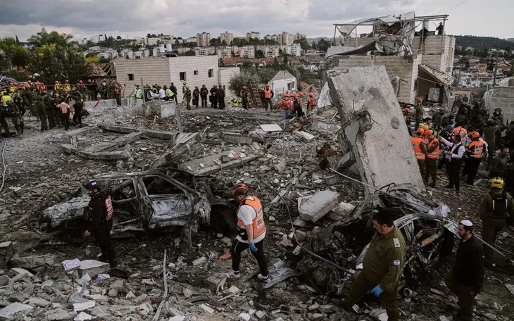 Lực lượng cứu hộ và quân đội làm việc tại hiện trường vụ tấn công tên lửa của Iran khiến nhiều người thiệt mạng ở Beit Shemesh, Israel, ngày 1/3/2026 (Ảnh: AP)