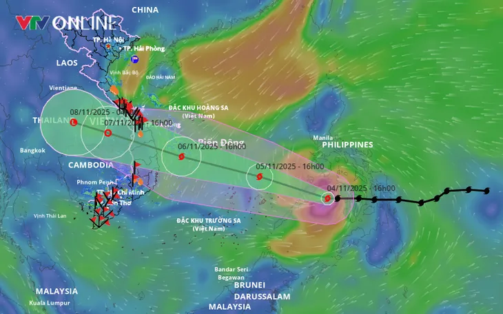 Trung tâm Dự báo Khí tượng Thủy văn Quốc gia cho biết: Từ đêm 4/11 đến rạng sáng 5/11, Kalmaegi vượt phía bắc đảo Palawan (Philippines) và đi vào Biển Đông, trở thành bão số 13; khi ở khu vực đặc khu Trường Sa và vùng biển Đà Nẵng - Khánh Hòa có thể vượt cấp 14 giật cấp 17; sau đó hướng về đất liền Việt Nam, trọng tâm khu vực từ Đà Nẵng đến Đắk Lắk.