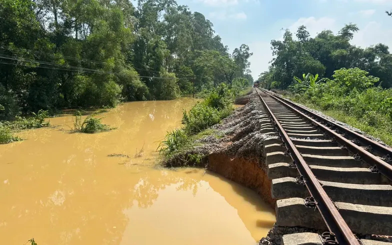 Trước đó, chiều 9/10, nước lũ từ thượng nguồn đổ về mạnh đã cuốn phăng toàn bộ nền đường, chỉ còn lại 2 thanh ray trơ trên không, khiến hoạt động chở hàng trên tuyến phải tạm dừng. Đoạn sạt lở dài 20-30 mét, sâu gần 2 mét. Ngay sau khi xảy ra sự cố, hàng trăm nhân lực cùng nhiều thiết bị máy móc, đã được huy động để nhanh chóng khắc phục hậu quả.