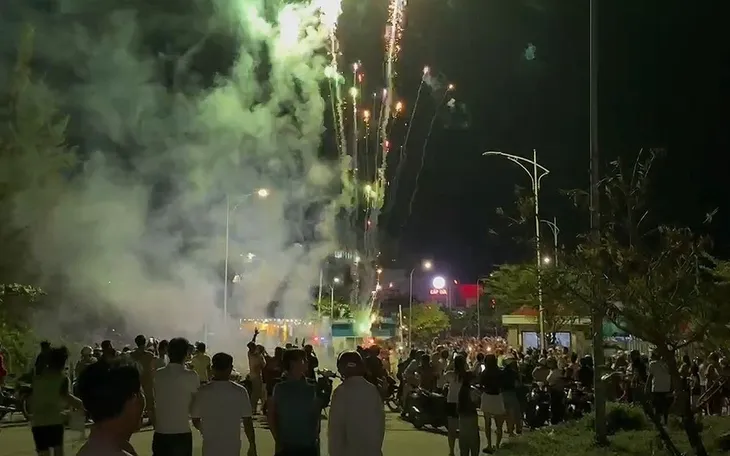 Hàng ngàn dân Lý Sơn đón 3 người thoát chết trên biển kỳ diệu trở về, đốt pháo hoa tưng bừng.