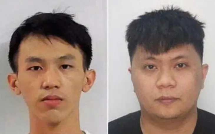 Đối tượng Trương Thanh Sĩ (bên trái) và Trần Anh Vương (bên phải) tại cơ quan Công an. (ảnh: CAND)