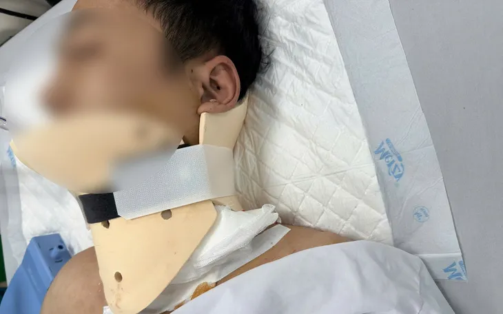 Bệnh nhân nhập viện trong tình trạng hôn mê, mất máu cấp do vết chém sâu vùng cổ trái. Các bác sĩ ghi nhận tình trạng huyết áp tụt, mạch nhanh, da niêm nhợt nhạt, máu chảy dữ dội, tiên lượng tử vong nếu không được xử trí ngay.