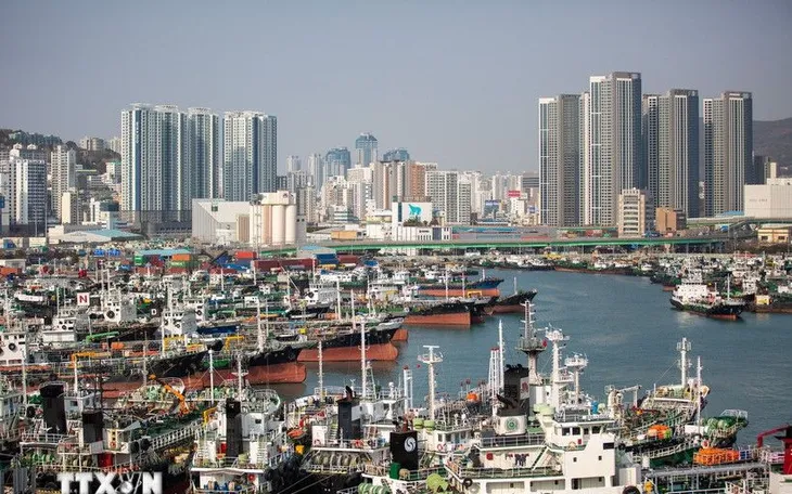Quang cảnh cảng hàng hóa ở Busan (Hàn Quốc). (Ảnh: THX/TTXVN)