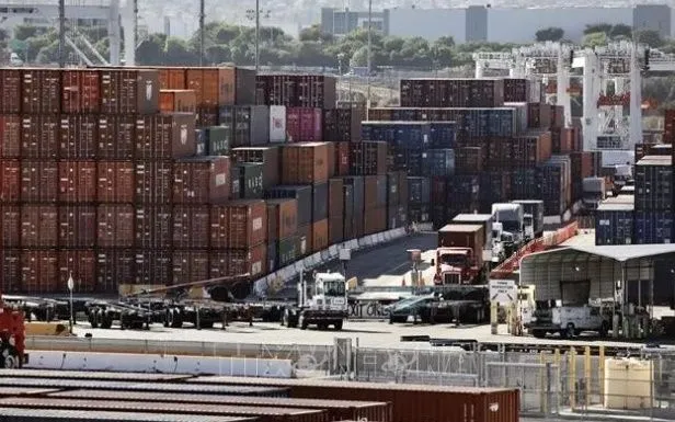 Quang cảnh cảng hàng hóa ở Los Angeles, California, Mỹ. Ảnh: THX/TTXVN