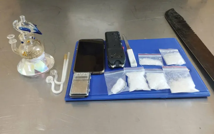 Qua kiểm tra, lực lượng chức năng thu giữ 6 túi nilon chứa tinh thể màu trắng (khối lượng khoảng 70 gam), cùng nhiều tang vật gồm bộ dụng cụ sử dụng ma túy, cân điện tử, kiếm, gậy điện và dao nhọn. Khánh khai nhận toàn bộ số tinh thể trên là ma túy.