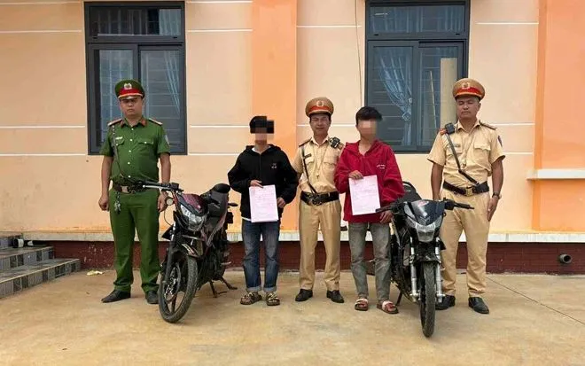 Lực lượng Cảnh sát giao thông đã phối hợp với Công an xã Quảng Tân mời 2 cháu V. A.T, V.T.C và phụ huynh lên làm việc. Qua quá trình làm việc, 2 cháu đã nhận thức và thừa nhận hành vi vi phạm.