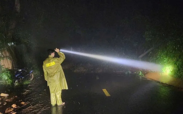 Cây rừng ngã đổ chắn ngang mặt đường tại km50 trên đèo Gia Bắc