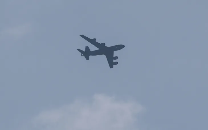 Một máy bay tiếp nhiên liệu trên không Boeing KC-135 Stratotanker của Không quân Mỹ bay qua Tel Aviv vào ngày 4/3/2026 (Ảnh: AFP/Getty Images)