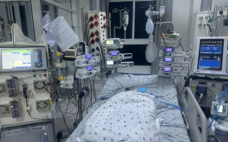 Sau gần hai tuần điều trị tích cực, tình trạng bệnh nhi cải thiện rõ rệt: hết sốt, nhịp tim giảm còn 120-130 lần/phút, huyết động ổn định, cai được máy thở, tỉnh táo và tiếp xúc tốt.