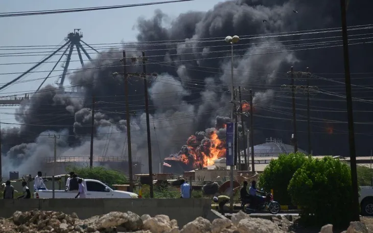 Khói bốc lên sau các cuộc tấn công UAV của RSF nhằm vào cảng phía Bắc ở thành phố Port Sudan bên bờ Biển Đỏ (Ảnh: AP)
