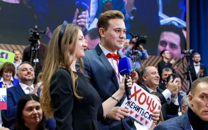 Màn cầu hôn của Kirill Bazhanov, phóng viên Kênh 4 tại Yekaterinburg, trước sự chứng kiến của Tổng thống Nga đã khiến khán giả bật cười và vỗ tay tán thưởng. Sau đó, Bazhanov đặt câu hỏi với Tổng thống Putin về việc tăng cường hỗ trợ cho các gia đình trẻ.