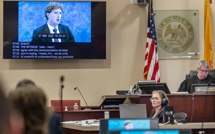 Bản ghi lời khai của ông Mark Zuckerberg được phát cho bồi thẩm đoàn tại Santa Fe, New Mexico, ngày 4/3/2026 (Ảnh: Jim Weber/Santa Fe New Mexican via AP, Pool)