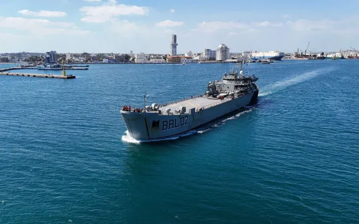 Một trong hai tàu Hải quân Mexico rời cảng Veracruz ở nước này ngày 8/2 để đưa hàng đến Cuba (Ảnh: AFP)