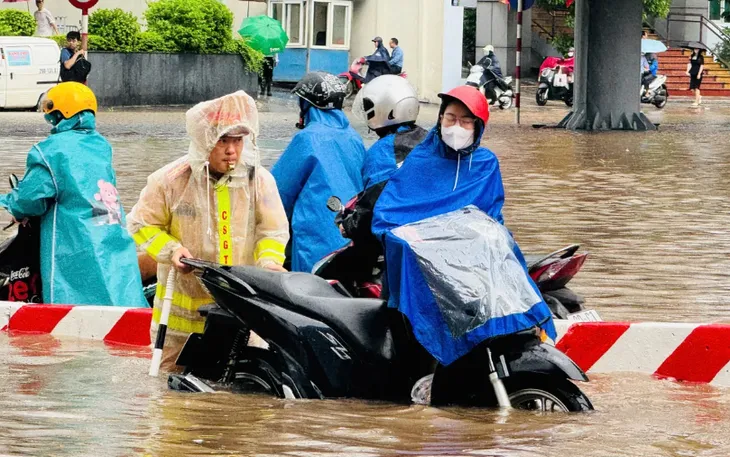 Do ảnh hưởng của bão số 5 gây mưa lớn kéo dài trong đêm, nhiều tuyến phố trên địa bàn Hà Nội đã ngập sâu.