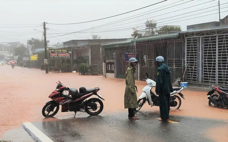 Mưa lớn khiến Quốc lộ 55 ở Lâm Đồng ngập sâu giữa mùa khô.