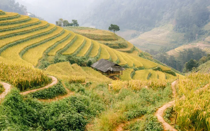 Những thửa ruộng bậc thang xếp tầng như sóng lúa dạt dào, mời gọi bước chân lữ khách.