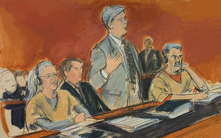 Ảnh phác họa phiên xét xử vợ chồng Tổng thống Nicolas Maduro tại New York hôm 26/3/2026 (Ảnh: AP)
