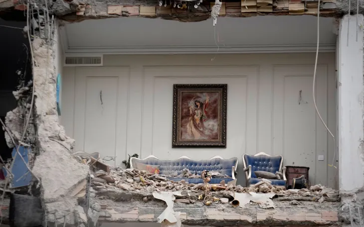 Tòa nhà bị trúng bom trong cuộc không kích trước đó của Mỹ và Israel ở Tehran, Iran (Ảnh: AP)