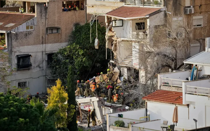 Lực lượng cứu hộ Israel tìm kiếm người mất tích tại tòa nhà bị trúng tên lửa ở Haifa, ngày 6/4/2026. (Ảnh: AP)